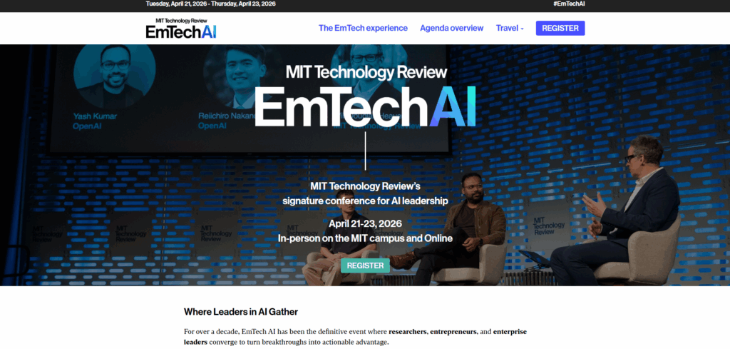Hosted by MIT Technology Review, the EmTech AI Conference 2026 in Cambridge, Massachusetts, is a premier event that brings together AI leaders who are translating advanced AI research into practical business impacts. The conference focuses on breakthrough AI technologies and their applications across industries, including healthcare, finance, manufacturing, and more. Attendees gain insights into how AI innovation scales up to affect governance, enterprise growth, and community development.