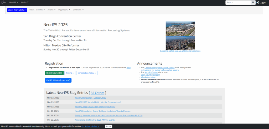 NeurIPS is one of the most prestigious AI research conferences globally, focusing on machine learning, neural computation, and AI safety. Held in San Diego, this event gathers researchers, scientists, and engineers presenting their latest findings in AI algorithms, ethics, and reproducibility.
