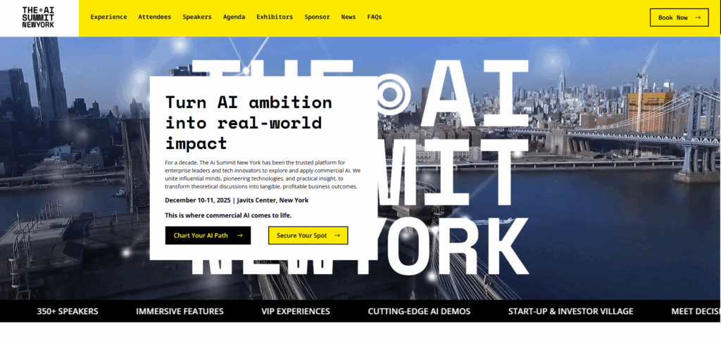 The AI Summit New York is a leading enterprise AI event focused on transformative insights, practical workshops, and networking among AI practitioners and business leaders. Celebrating its 10th year, the summit covers AI strategy, implementation, and governance across various industries.