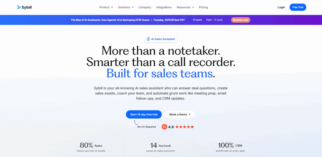 Sybill AI offers a sophisticated AI-driven platform for analyzing customer interactions and sales conversations, delivering deep insights that optimize sales strategies and enhance customer engagement. Leveraging machine learning models, it deciphers behavioral patterns and communication nuances, enabling sales leaders to tailor approaches for improved conversion and retention. Recognized in executive technology roundups and widely discussed in sales innovation forums, Sybill AI enhances the predictive understanding of customer needs and sales effectiveness. By integrating these insights, sales organizations benefit from refined targeting, better training, and improved forecasting accuracy. This leads to measurable uplifts in revenue performance and customer satisfaction, providing strategic value to sales and commercial leadership focused on sustainable growth and competitive differentiation through AI-powered sales analytics.